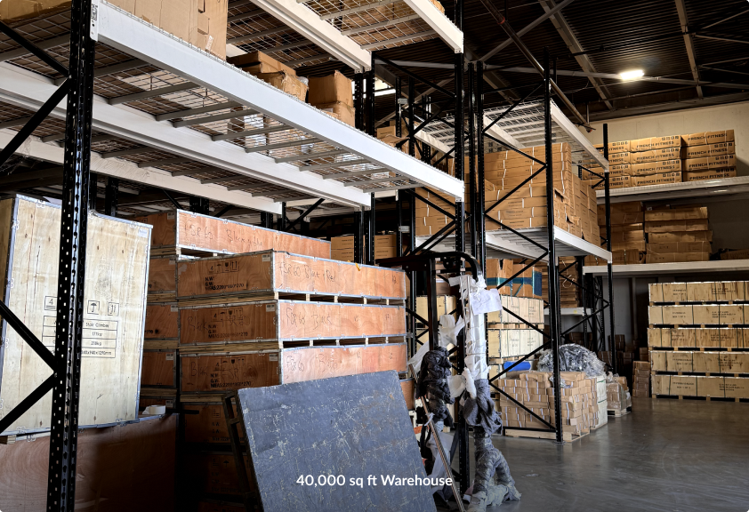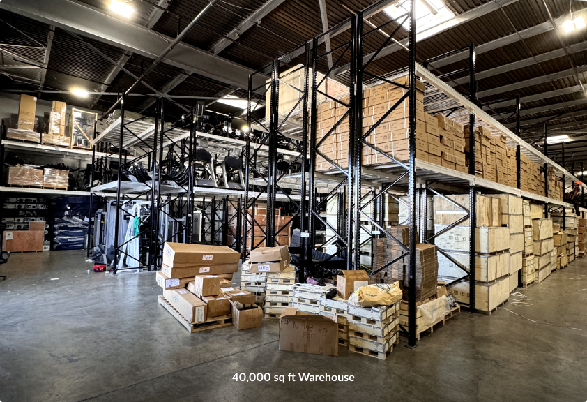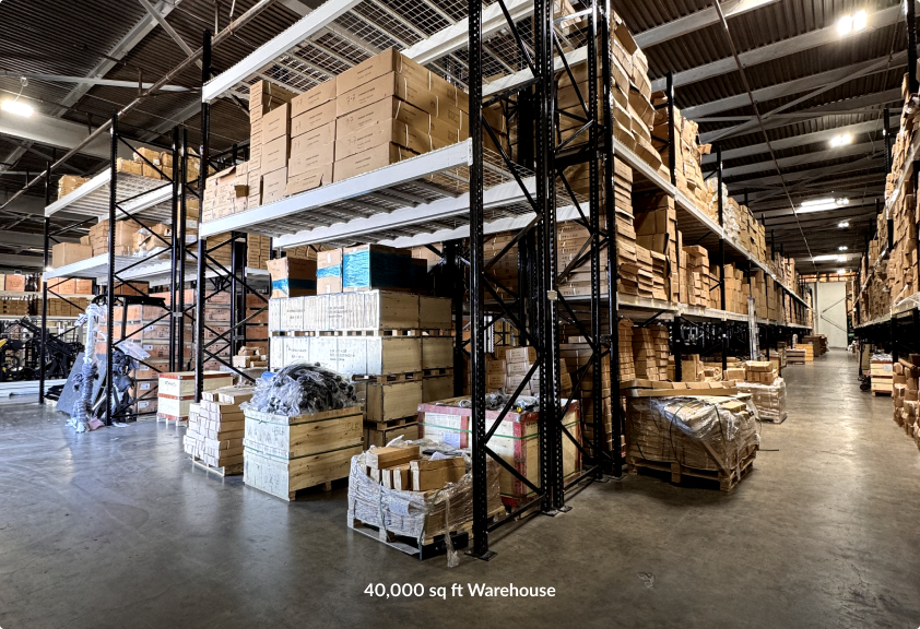 The 40,000 sq ft warehouse includes our 4,400 sq ft warehouse showroom.
