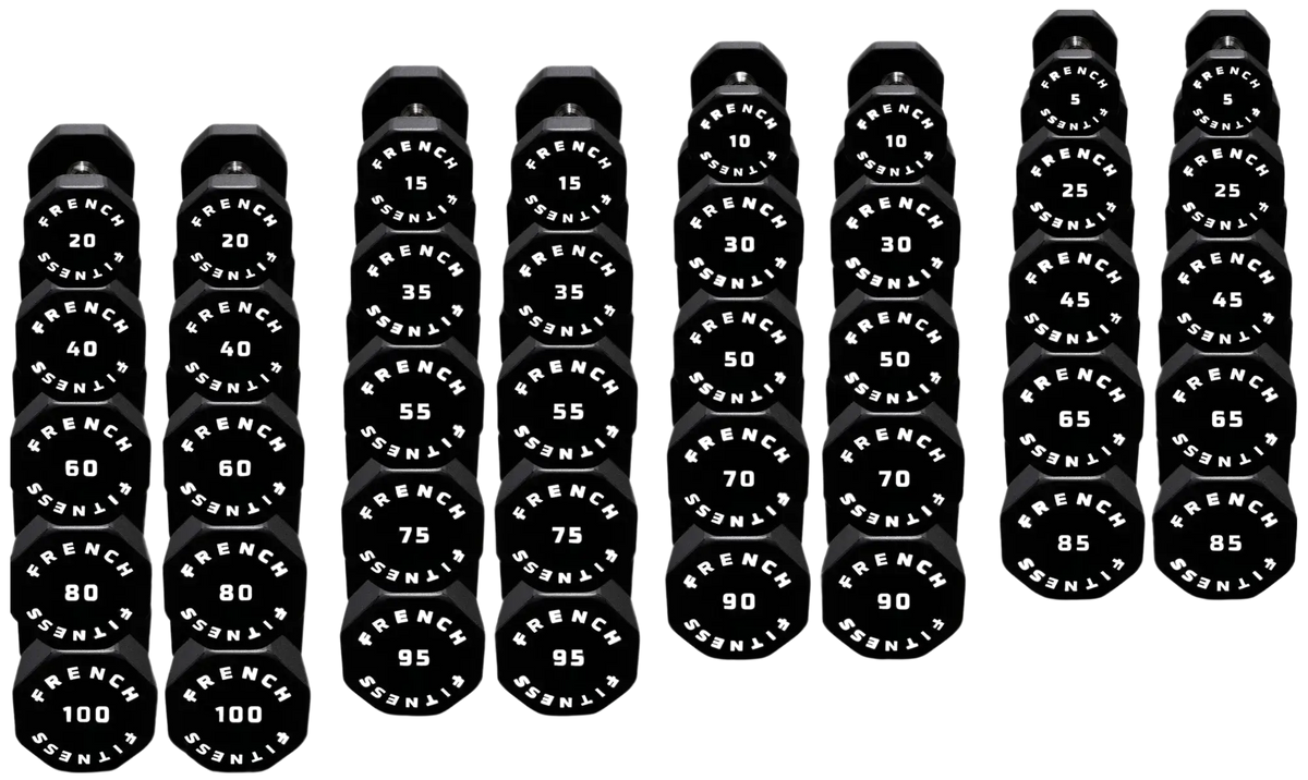 French Fitness Urethane 8 Sided Hex Dumbbell Set, 5-100 lbs (New)