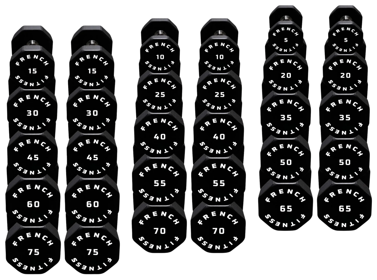 French Fitness Urethane 8 Sided Hex Dumbbell Set, 5-75 lbs (New)