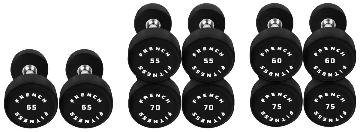 French Fitness Urethane Round Pro Style Dumbbell Set, 55-75 lbs (New)