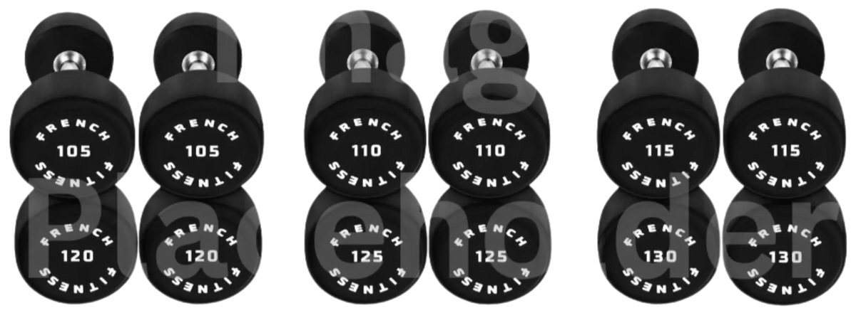 French Fitness Urethane Round Pro Style Dumbbell V2 Set, 105-130 lbs (New)