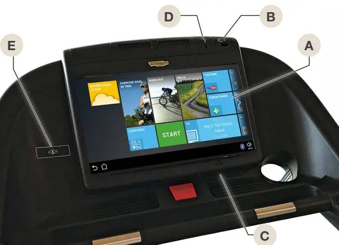 - Screen: it allows you to view and control information, settings and contents both for workouts and for entertainment. The tablet-style touch screen interface allows you to include the contents offered by the Technogym App Store.